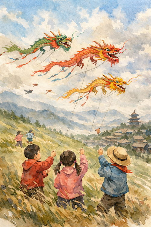 Imagine the thrill of flying a Chinese dragon kite with its long tail. Beautiful to use just as a room decoration