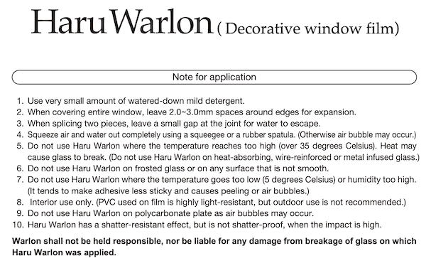 The appearance of Shoji Paper but is a Sticky backed acrylic and paper print film( Haru Warlon)